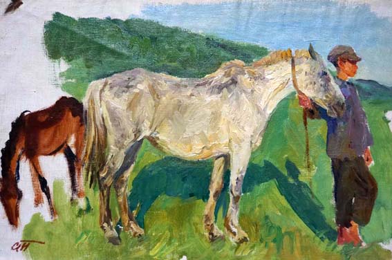 普拉斯托夫1893年生于俄罗斯乌里扬诺夫斯克的农村中,1972年去世。1912~1914年在莫斯科绘画雕刻建筑学校学习。十月革命后,回到故乡,被选入村苏维埃,担任贫农委员会书记。直接的生活经验,确立了普拉斯托夫终生的创作题材: 通过农村生活和农村劳动者的形象,表现新的苏维埃时代。著名苏联人民艺术家、苏联美术研究院院士、1966年获列宁奖章、1946年获斯大林奖章、1972年获国家列宾奖章、之后又两次获得列宁奖章和艺术金奖。其作品在世界众多博物馆中均有收藏。